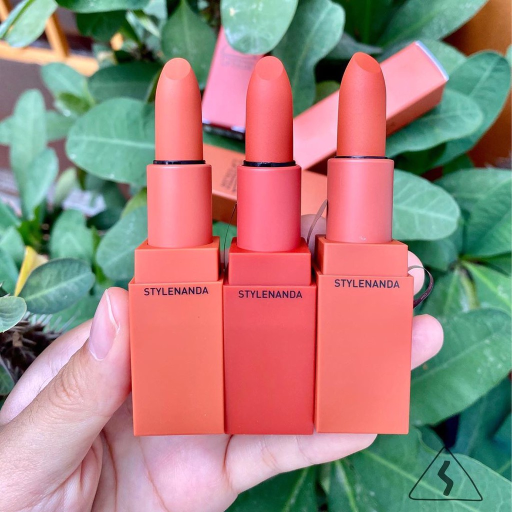 Hưng khá thi vị và phá cách khi hoán chuyển và pha trộn thêm tí ánh nâu để cho ra 3 sắc thái son khác nhau. › 3CE Matte Lip Color #230 Kytaly chính là thỏi son mix n match cực hay của 3CE trong đợt ra mắt lần này. Đây là thỏi son vỏ nhung có màu cam đỏ đất vô cùng lạ, quyến rũ và rực rỡ.